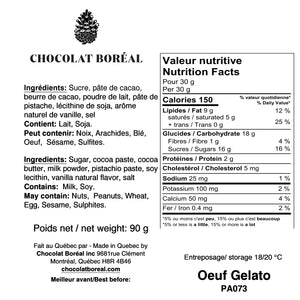 This egg is composed like a cup of artisanal gelato with flavors of caramel, pistachio and chocolate. The sections allow you to taste each flavor separately and then in harmony, as you would with Italian ice cream.
