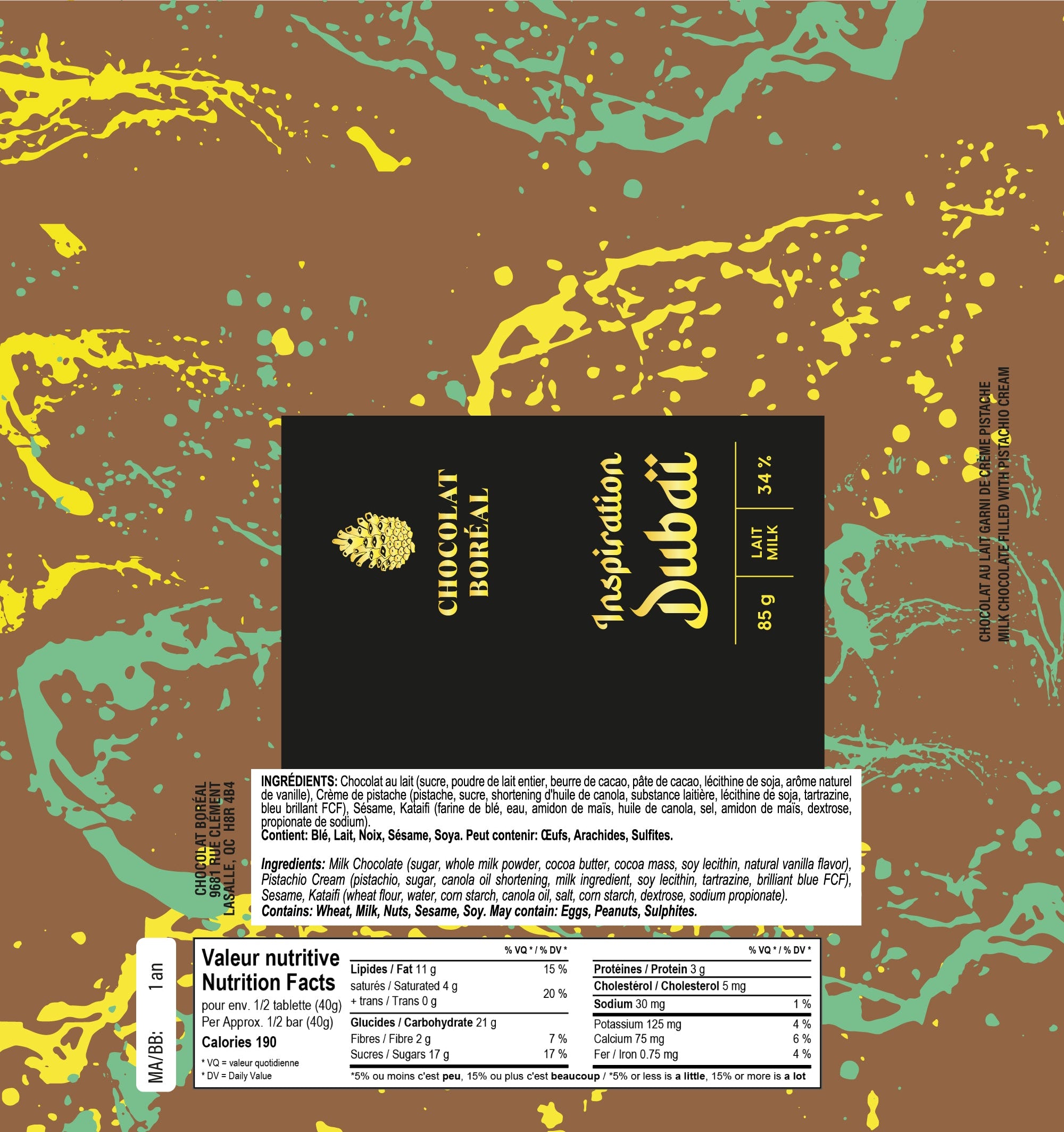 Dive into the refined world of Dubai with this milk chocolate bar, where silky sweetness meets the rich flavor of roasted pistachios and the delicate crunch of golden kataifi.