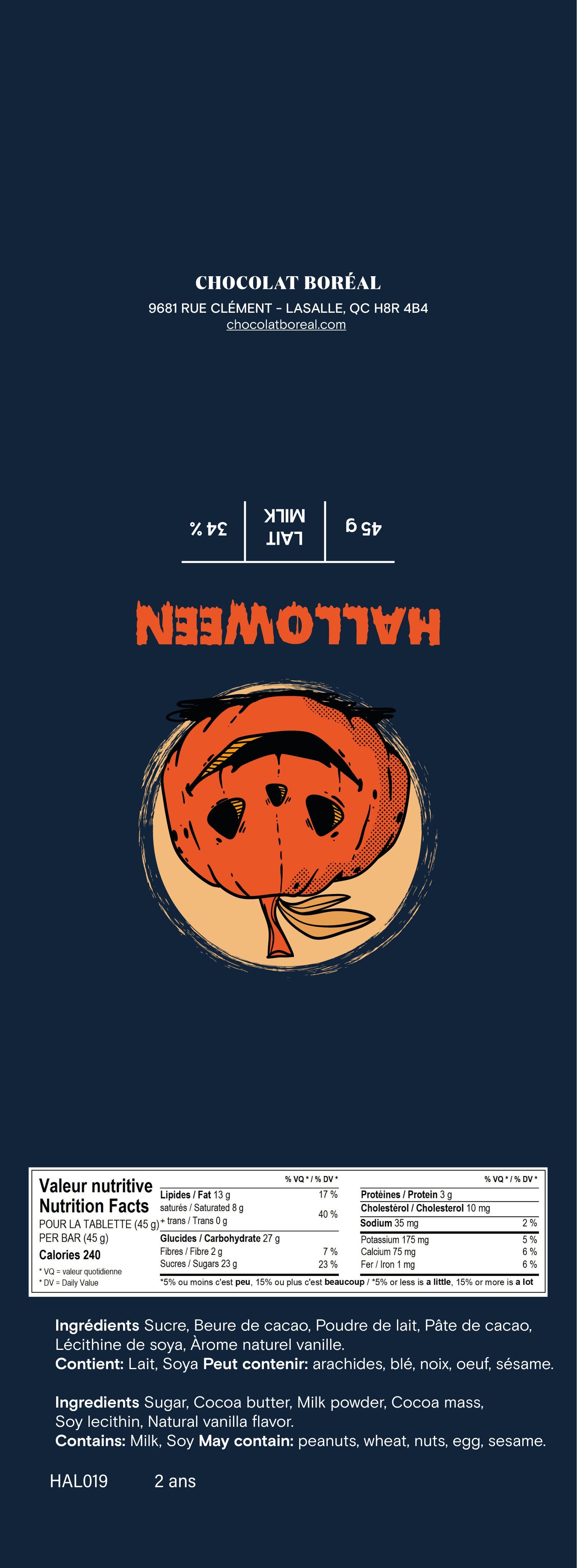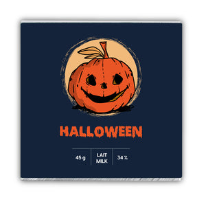 Immerse yourself in the enchantment of our Halloween edition milk chocolate bar. Watch as this majestic pumpkin stands before the glow of the full moon. And savor the atmosphere of this spellbinding night, one bite at a time.
