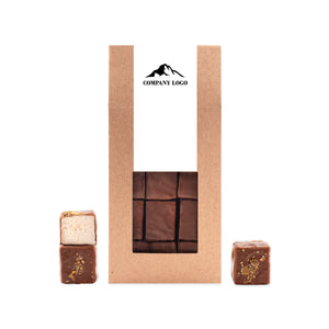 We offer custom label personalization for our marshmallow boxes, featuring your logo and visual identity. This option allows you to create a unique packaging that reflects your brand, ideal for special campaigns, corporate gifts, or events.