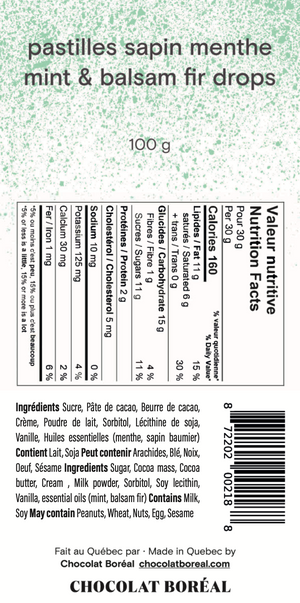 These fine pastilles garnished with a creamy fir-mint can be enjoyed at any time with their boreal notes that are both classic and refreshing.
