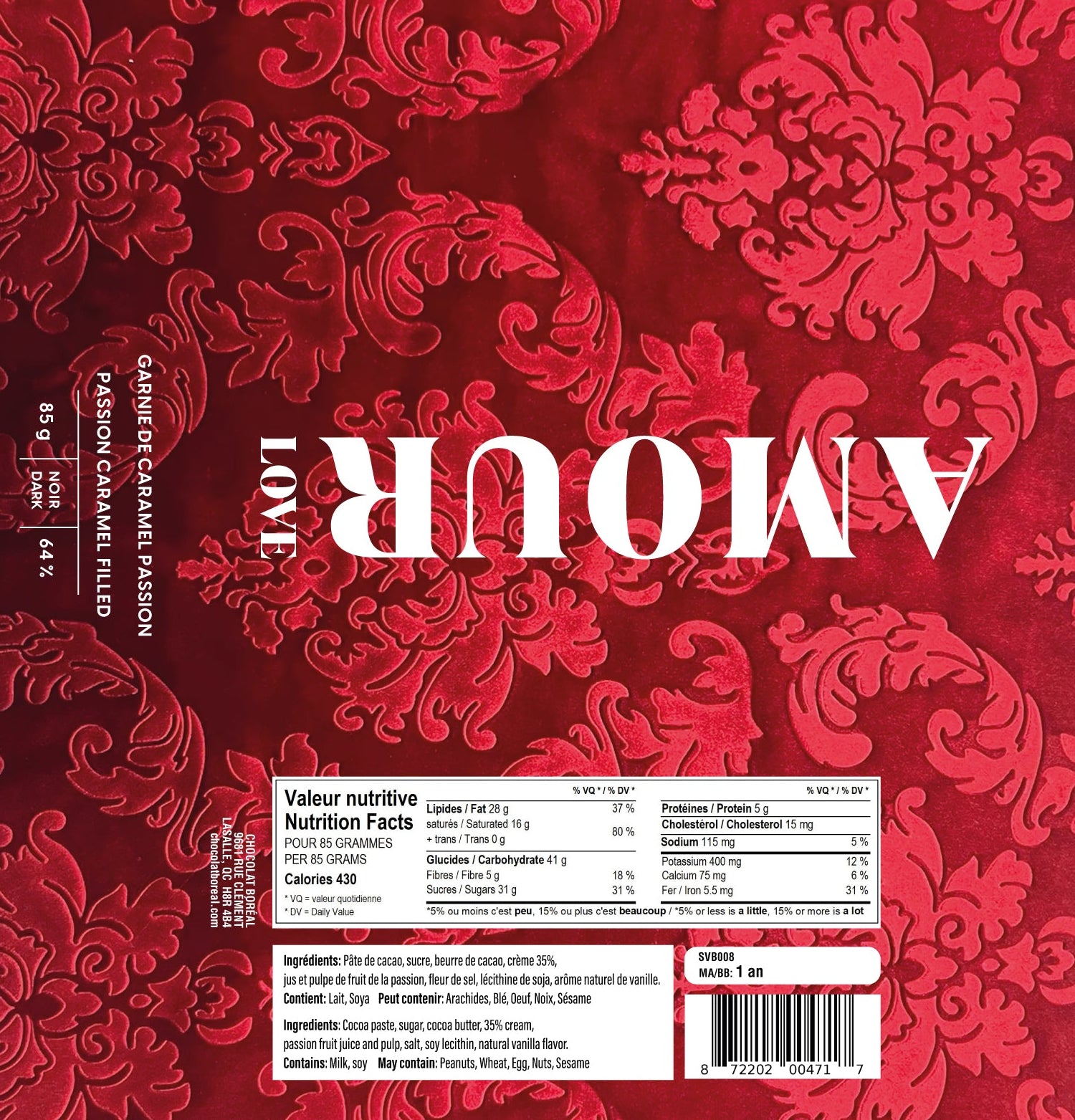 This decadent chocolate bar is the very emblem of romantic passion. Filled with flowing passion fruit caramel, you can fill your mouth with it without a second thought.