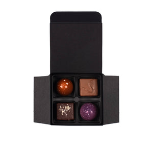 Boîte personnalisée noire de 4 chocolats sérigraphiée
